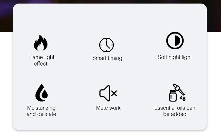 Ce diffuseur d’arôme ultrasonic combine l’aromathérapie, l’humidification et une magnifique lumière LED effet flamme. Parfait pour détendre et décorer votre maison !
